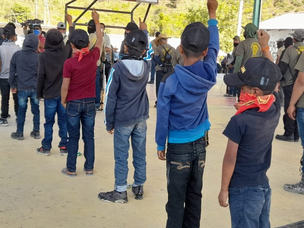 Constantino Toribio Gaspar, uno de los comandantes de dicha organización armada, es quien se encarga del entrenamiento militar de otros infantes ya enrolados en sus filas. En ese momento pide a los más pequeños: “levanten la mano el niño o la niña que quiere formar parte de la Policía Comunitaria”.