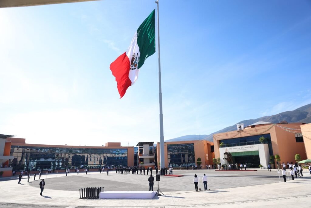 Con los honores correspondientes al lábaro patrio, la gobernadora Evelyn Salgado, acompañada por el Presidente del Tribunal Superior de Justicia, Raymundo Casarrubias Vázquez, activó el mecanismo para izar la Bandera Monumental, escoltada por elementos de la Secretaría de Seguridad Pública.