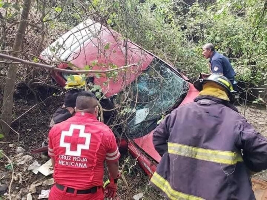 Las autoridades informaron que por el impacto, las víctimas quedaron prensadas dentro del vehículo marca Nissan, tipo Tsuru, de color rojo.
