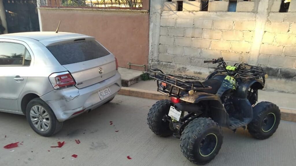 El día de ayer, a eso de las 17:50 horas una cuatrimoto derrapó y dejó a sus dos tripulantes con lesiones. Paramédicos de Protección Civil Municipal se trasladaron al lugar, encontrando a María Guadalupe “N”, de 24 años, quien presentaba golpes contusos con probable fractura, así como Ricardo “N” de 5 años, quien tenía un moretón en la cabeza y golpes.