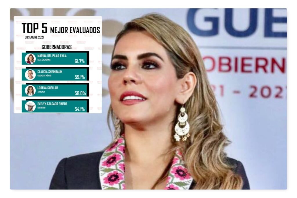 Evelyn Salgado Pineda es una de las cinco gobernadoras mejor evaluadas por género, con una aprobación del 54.1 por ciento de los encuestados por Consulta Mitofsky, informó Roy Campos, correspondiente al mes de diciembre 2021.