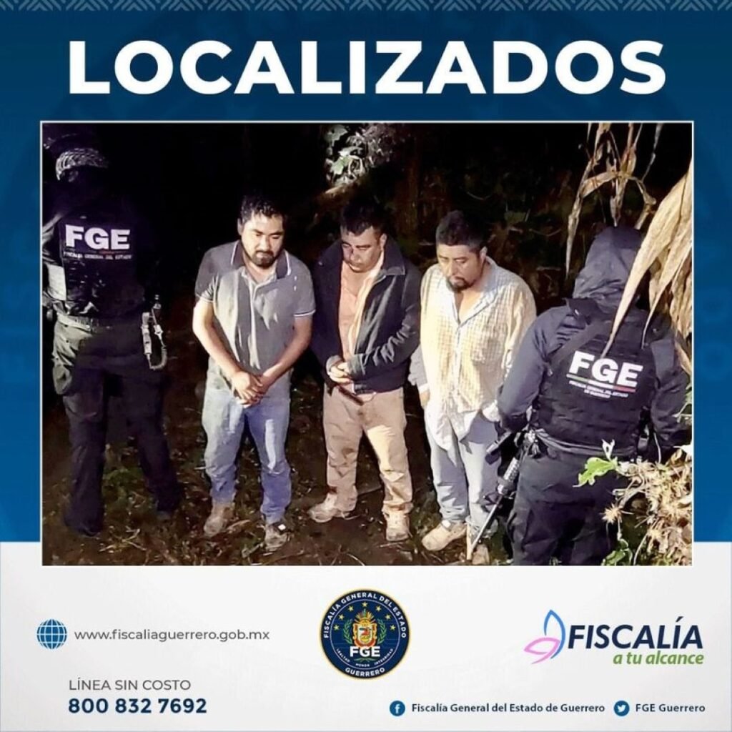 La Fiscalía General del Estado logró la localización sanos y salvos de Leonel “N”, Galileo “N” y Erwien Javier “N”, en el poblado de Apatzuca, municipio de Zapotitlán Tablas.