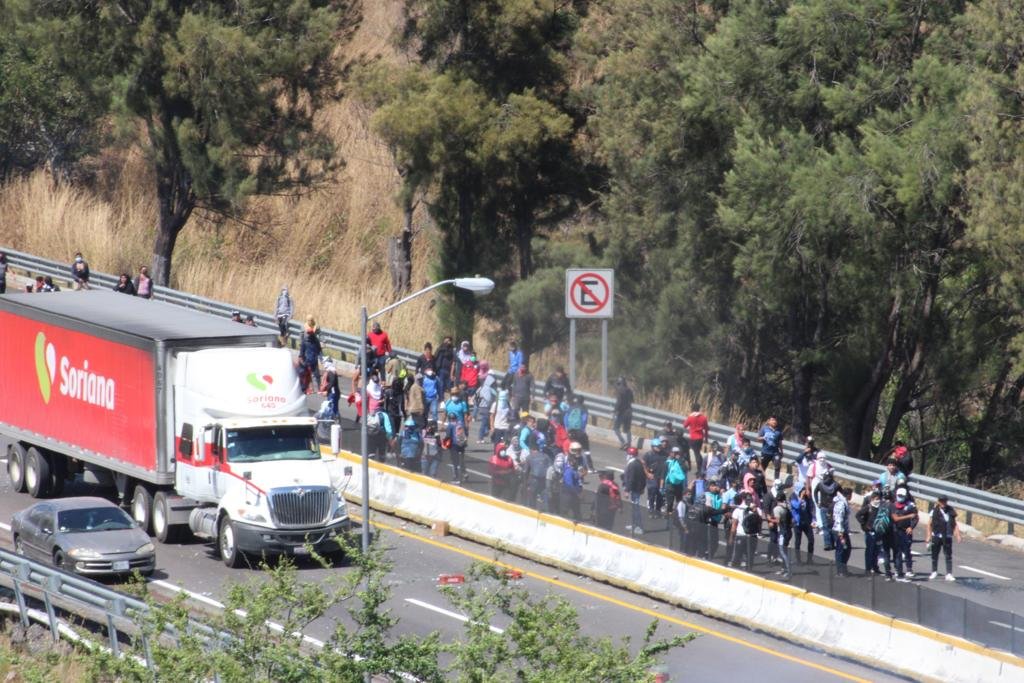 En un video publicado en redes sociales se puede ver a algunas personas quienes dejan ir un tráiler de la cadena de autoservicios sobre miembros de la Guardia Nacional.