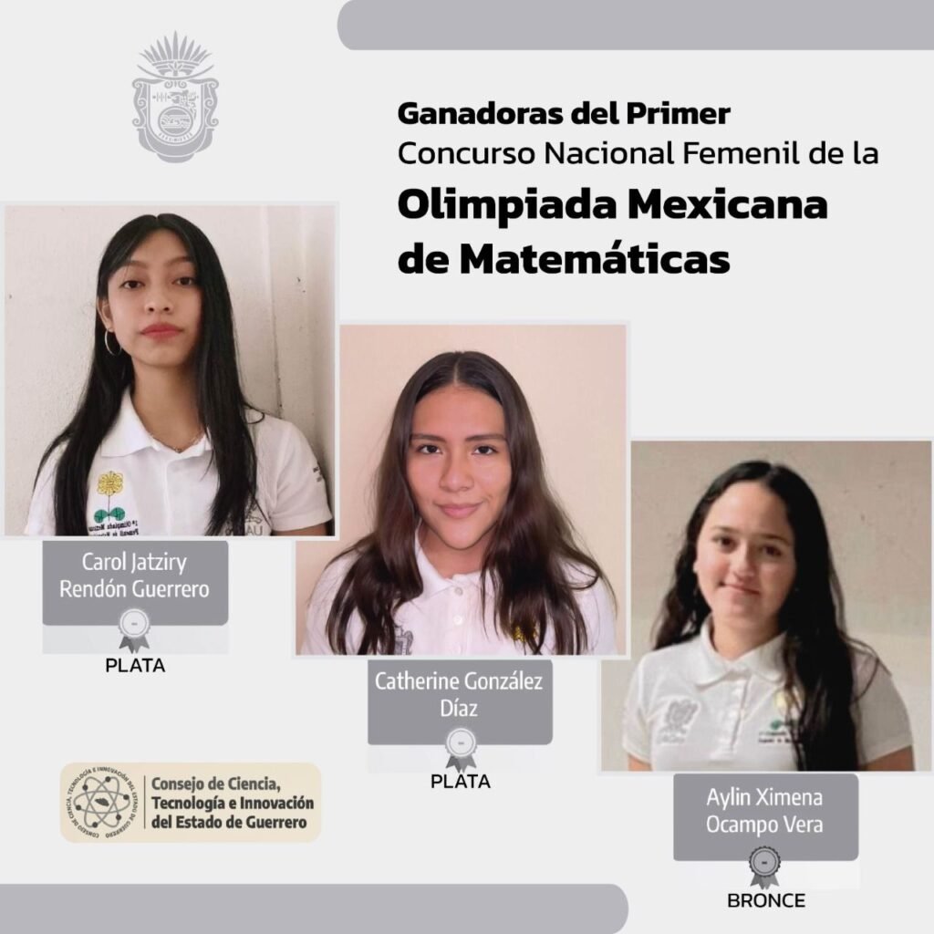Jóvenes guerrerenses estudiantes de educación media superior obtuvieron medallas de plata y bronce en el primer Concurso Nacional Femenil de la Olimpiada Mexicana de Matemáticas.