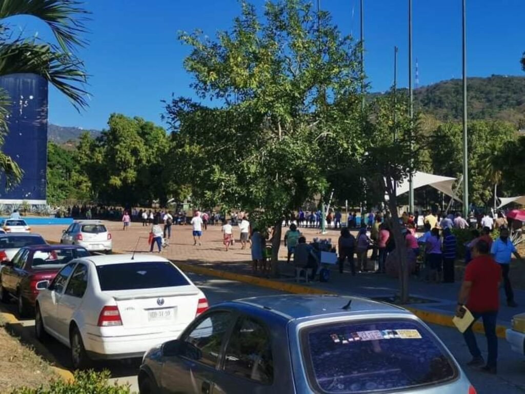 De acuerdo con la convocatoria, este día les corresponde acudir a los adultos con apellido paterno que comienza con las letras R y S. Desde temprano, la gente llegó a formarse en los módulos ubicados en la Unidad Deportiva Acapulco, Instituto Tecnológico de Acapulco y Centro Internacional Acapulco.
