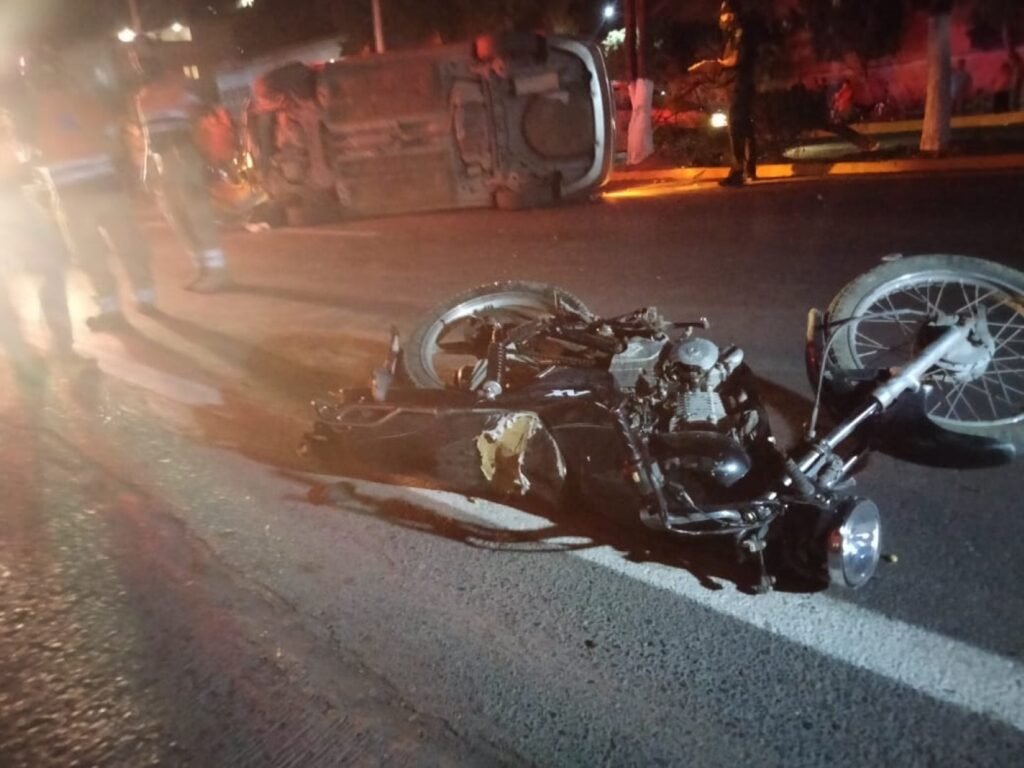 Una muerto fue el saldo de un aparatoso accidente donde se vieron involucrados un automóvil y una motocicleta, en el Periférico de Iguala.
