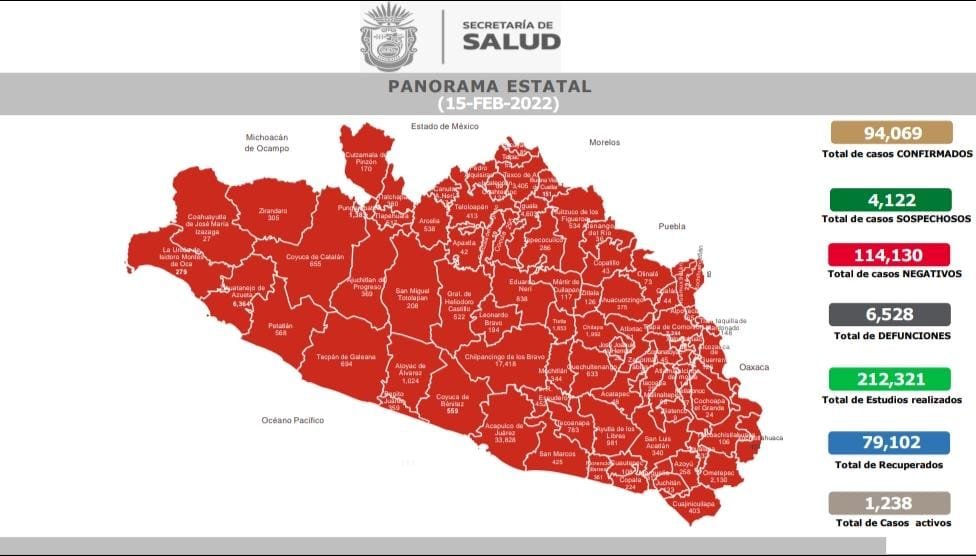 Desde el inicio de la pandemia, en Guerrero se acumulan 94,069 casos confirmados y 6,528 defunciones a causa del COVID-19, de acuerdo con el informe “COVID-19 Guerrero”, que actualiza diariamente Salud estatal.