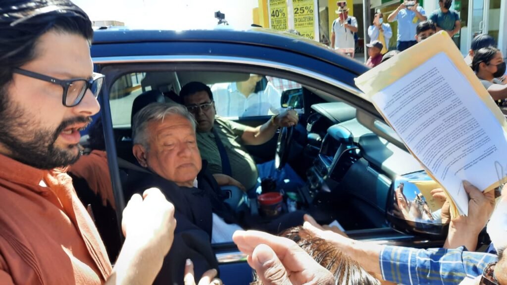 Este domingo, quienes están en esa situación laboral acudieron a las inmediaciones de la sede del Poder Ejecutivo, en donde un grupo de funcionarios estatales buscaban contener su protesta, pero finalmente pudieron entregar ese oficio al presidente que llegó a bordo de una camioneta Suburban negra.