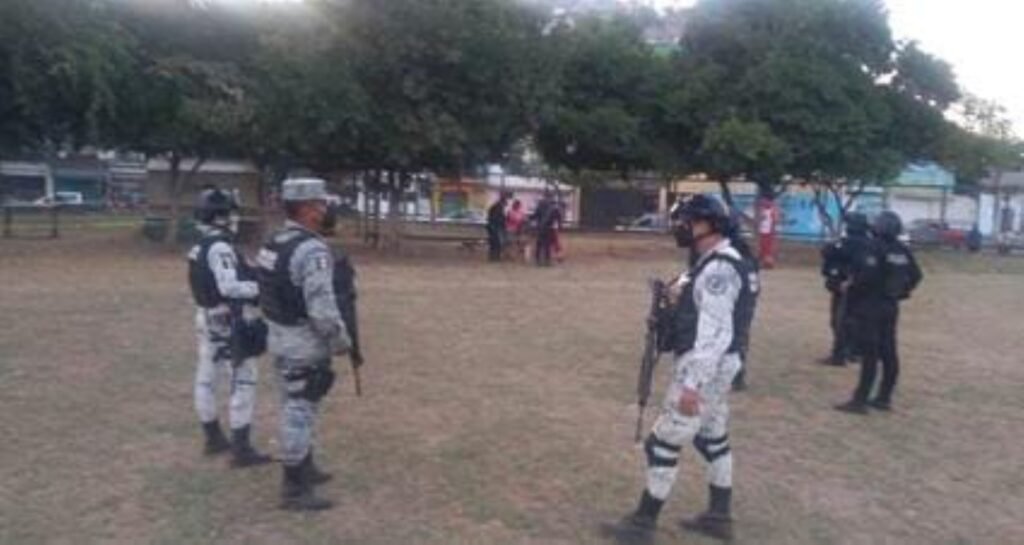 Se movilizaron de inmediato policías estatales y elementos de la Guardia Nacional (GN), localizando un vehículo Chevrolet tipo Aveo de color arena, así como el cadáver de un hombre que estaba con los pies afuera del vehículo y el resto del cuerpo por dentro.