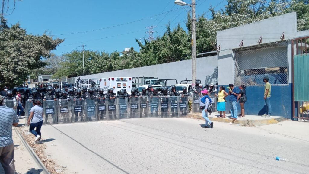 Camiones articulados con decenas de elementos de la Guardia Nacional ingresaron al penal durante toda la mañana, mientras que un fuerte dispositivo de seguridad se montó en toda la zona donde se ubica el Cereso de Acapulco.