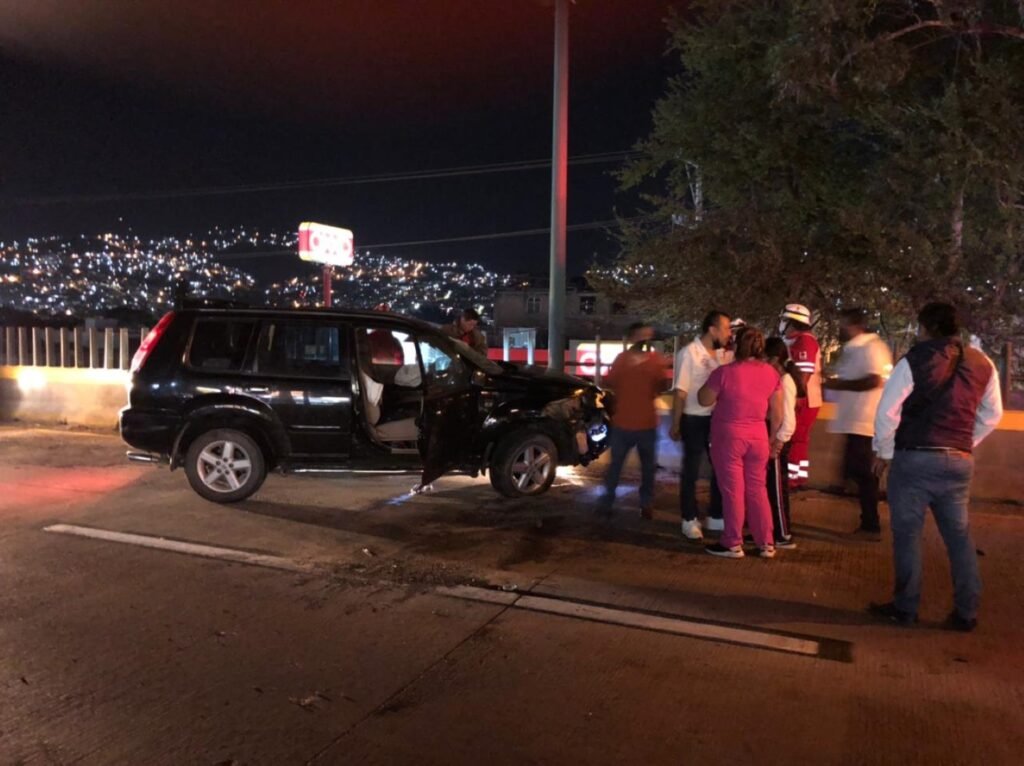 Una camioneta se impactó contra los muros divisorios de concreto de los carriles centrales norte-sur del Bulevar Vicente Guerrero, justo arriba del puente Ayutla, en Chilpancingo, dejando solo daños materiales de consideración.