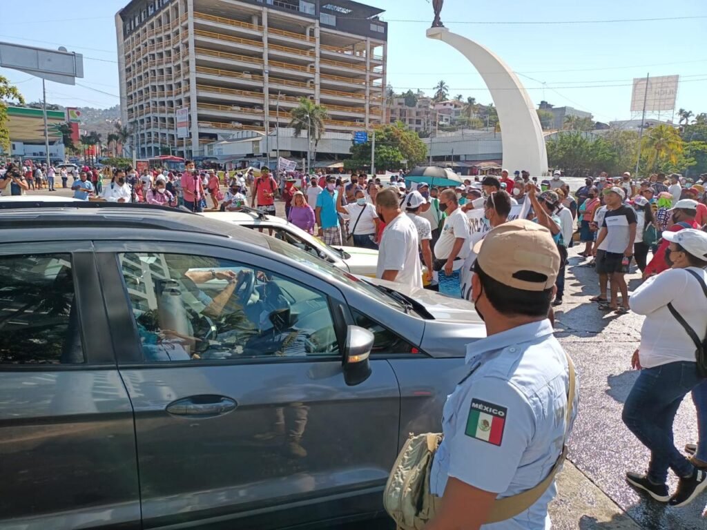 Desde las 9:00 de la mañana se concentraron en La Diana meseros, masajistas, tolderos y pescadores para iniciar una protesta en contra del Ayuntamiento de Acapulco y exigir una explicación sobre el uso de los recursos que recaudan a través del cobro de uso y goce de la zona federal de las playas.