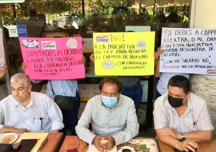 La aprobación de esta iniciativa “representaría que los patrones puedan disponer de manera unilateral del salario de los compañeros trabajadores y ello solo beneficiaría a las sociedades de crédito, las llamadas Sofomes”, expresó el dirigente de la CROC.