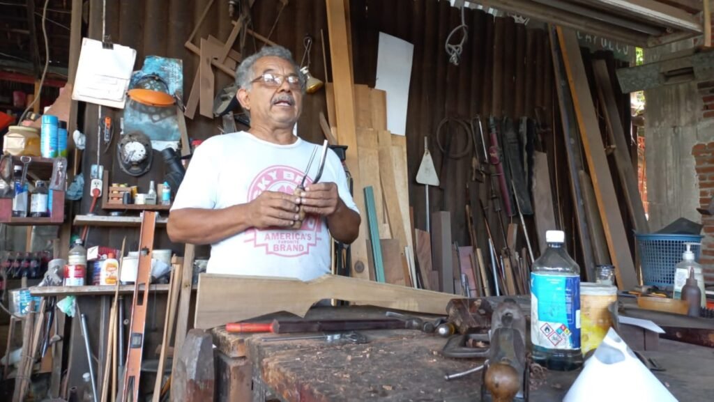El ingenio y la necesidad lo fueron obligando a “sacarle forma a la madera”; relata. Durante sus años de ebanista y perfeccionista en tallados de madera, ha realizado trabajos que van desde una mesa de billar profesional y sus tacos de precisión hasta cajas de navajas para galleros, según cuenta.