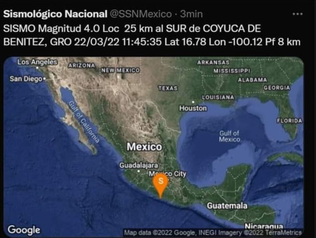 De acuerdo con el Servicio Sismológico Nacional (SSN), el movimiento telúrico se localizó a 25 kilómetros al sur de Coyuca de Benítez, municipio contiguo a Acapulco. El fenómeno ocurrió a las 11:45 de la mañana.