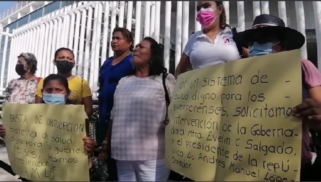 ACAPULCO. —Familiares de pacientes de los hospitales de El Quemado y Donato G. Alarcón de Ciudad Renacimiento, protestaron este jueves en el Edificio Inteligente, que alberga las oficinas de la Secretaría de Salud.