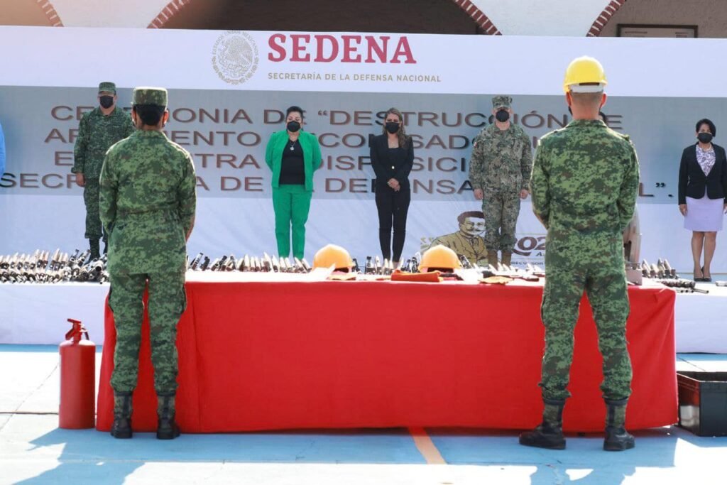- Al encabezar la destrucción de armas decomisadas a delincuentes, la gobernadora dijo que hay una “estrategia integral” y de “largo alcance” para alcanzar “la paz social duradera en nuestro estado”, aunque no se logrará “con más fuego y violencia”