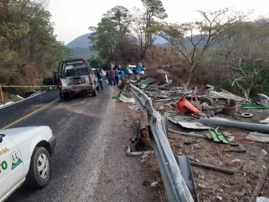 Una mujer murió después de que un tráiler volcó al chocar con otro pesado camión sobre la carretera federal México-Acapulco, tramo Chilpancingo-Ocotito, cerca del Crucero que conduce a zintlanapa entre Agua de Obispo y el Rincon.