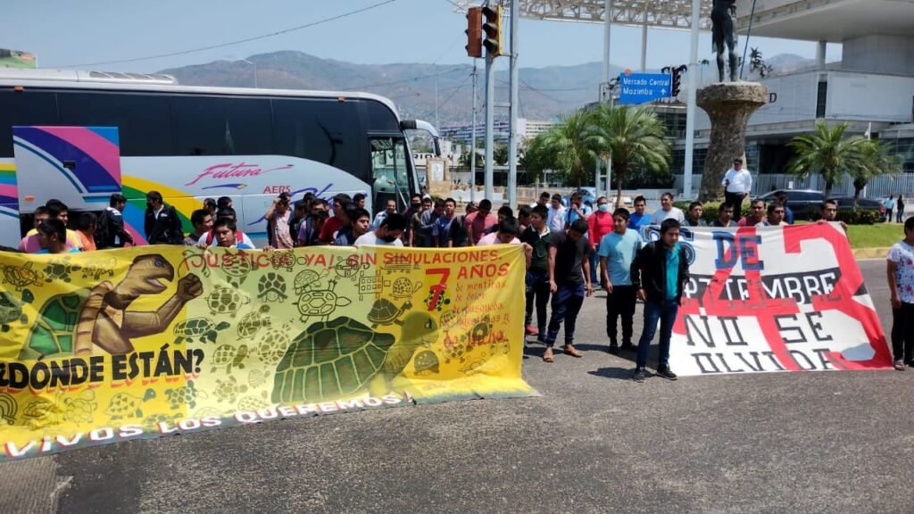 Los manifestantes exigieron al gobierno federal avances en las investigaciones para esclarecer la desaparición de sus compañeros, al cumplirse 7 años y 7 meses de los hechos ocurridos en Iguala el 26 de septiembre de 2014.
