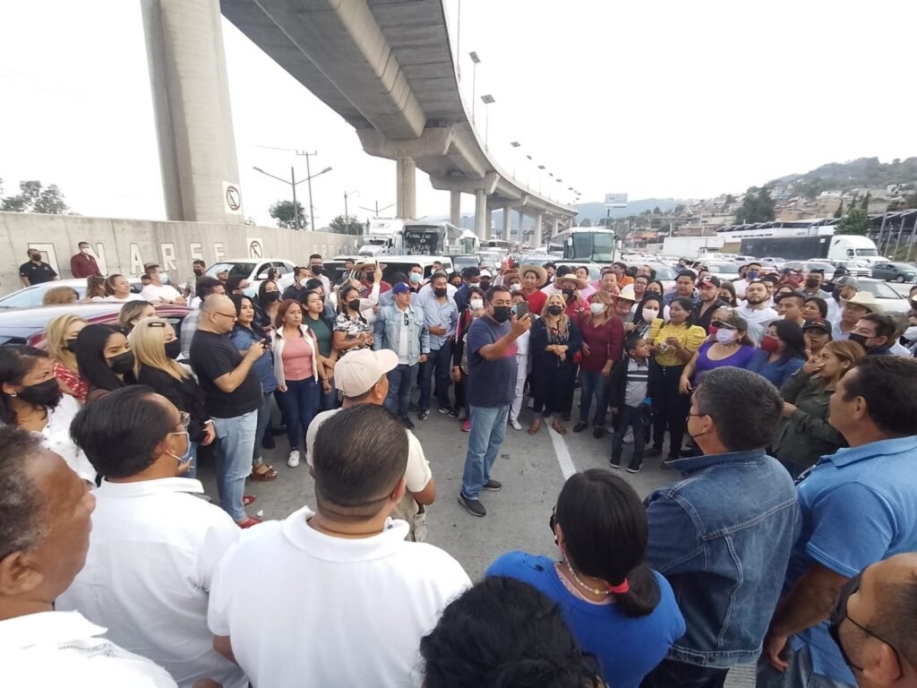 El senador con licencia estuvo acompañado de los diputados locales Yoloczin Domínguez Serna y Joaquín Badillo Escamilla, quienes salieron en media docena de autobuses de pasajeros.