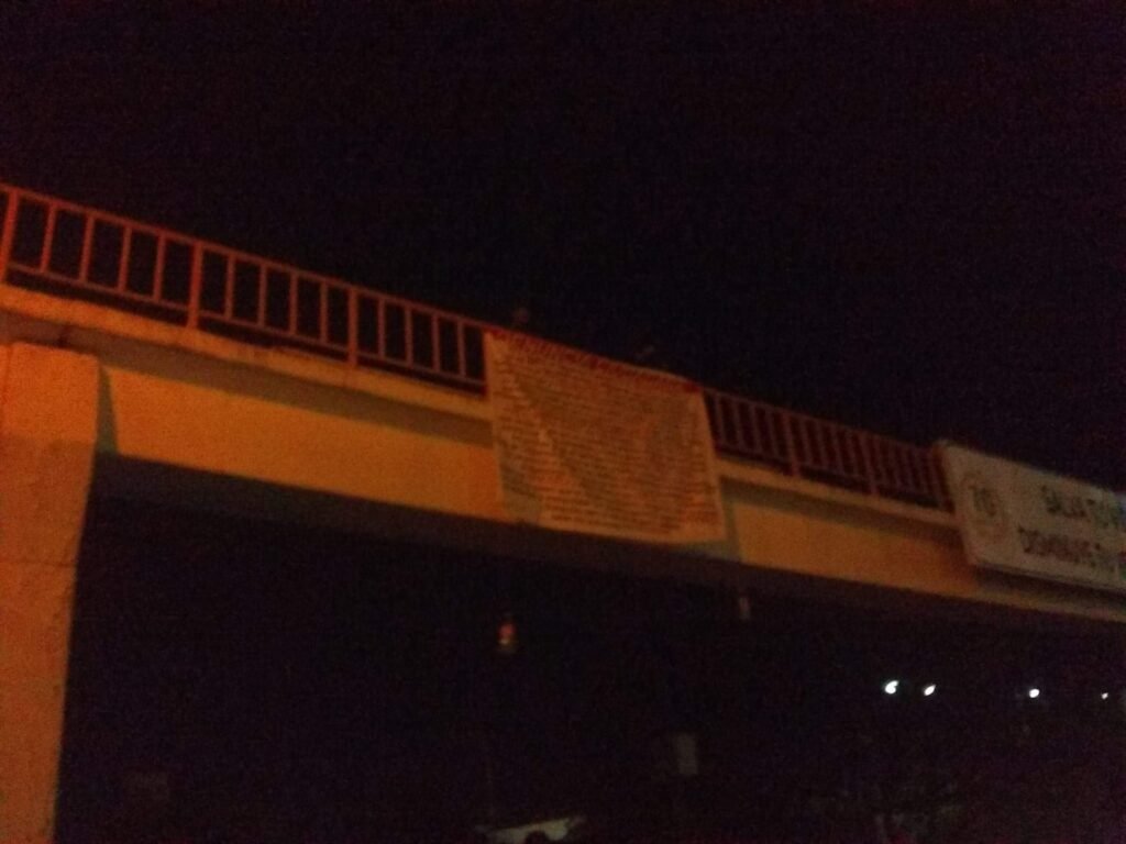 Una de las mantas fue colgada en el puente de la colonia Lázaro Cárdenas, y otra en el puente del punto conocido como “El 300”; las dos fueron puestas y retiradas la noche del martes, sobre el bulevar Vicente Guerrero.
