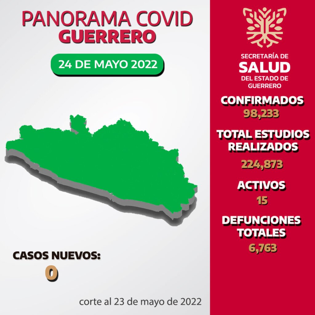 Asimismo, la dependencia estatal destacó que desde el inicio de la pandemia, en Guerrero se acumulan 98,233 casos confirmados y 6,763 defunciones a causa del Covid-19, con la presencia de 15 casos activos que se ubican en los municipios de Acapulco, con 6; Chilpancingo, 2; Chilapa, 2, mientras que en La Unión, Tecpan, Tlapa, Tlapehuala y Zihuatanejo, con 1 caso cada municipio.