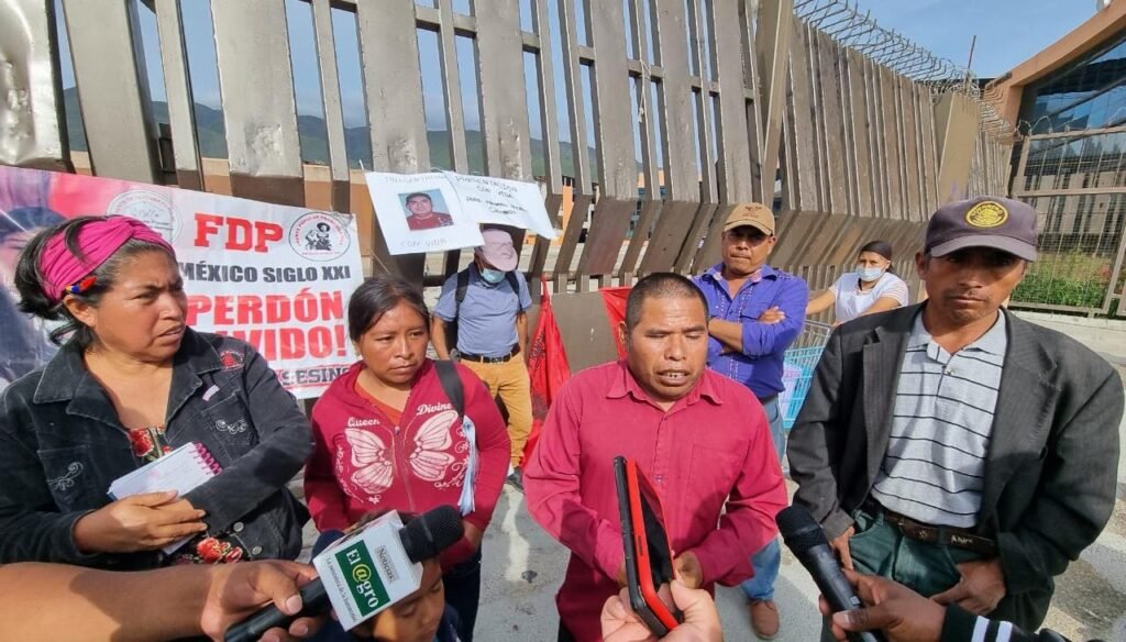 Familiares e integrantes del Frente de Defensa Popular (FDP), realizaron una protesta afuera de Palacio de Gobierno para denunciar que desde el 30 de mayo pasado fue privado de su libertad un transportista de Chilapa y acusaron de ser los responsables a Policías Comunitarios de esa zona de la Montaña baja.