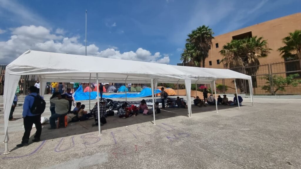 Integrantes del Frente Popular de la Montaña se instalaron en plantón para exigir una audiencia con la gobernadora, Evelyn Salgado, y que se realicen mesas de trabajo de las diferentes secretarias del gobierno estatal para tratar diversos temas que tienen.