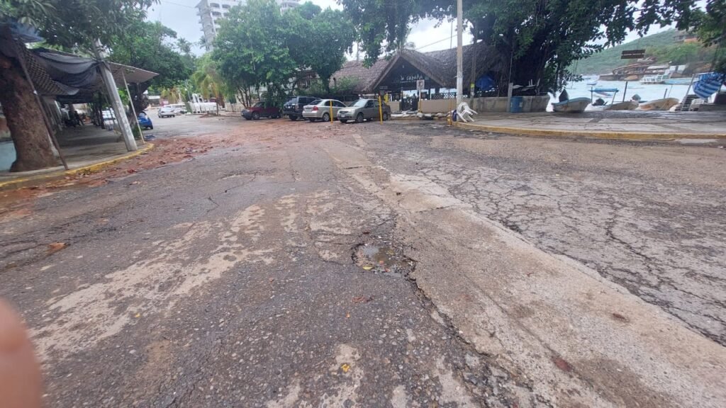 También en la avenida principal hacia playa Caleta está un tramo con drenaje roto y aguas negras expuestas, así como varios baches que causan mala imagen ante el turismo.