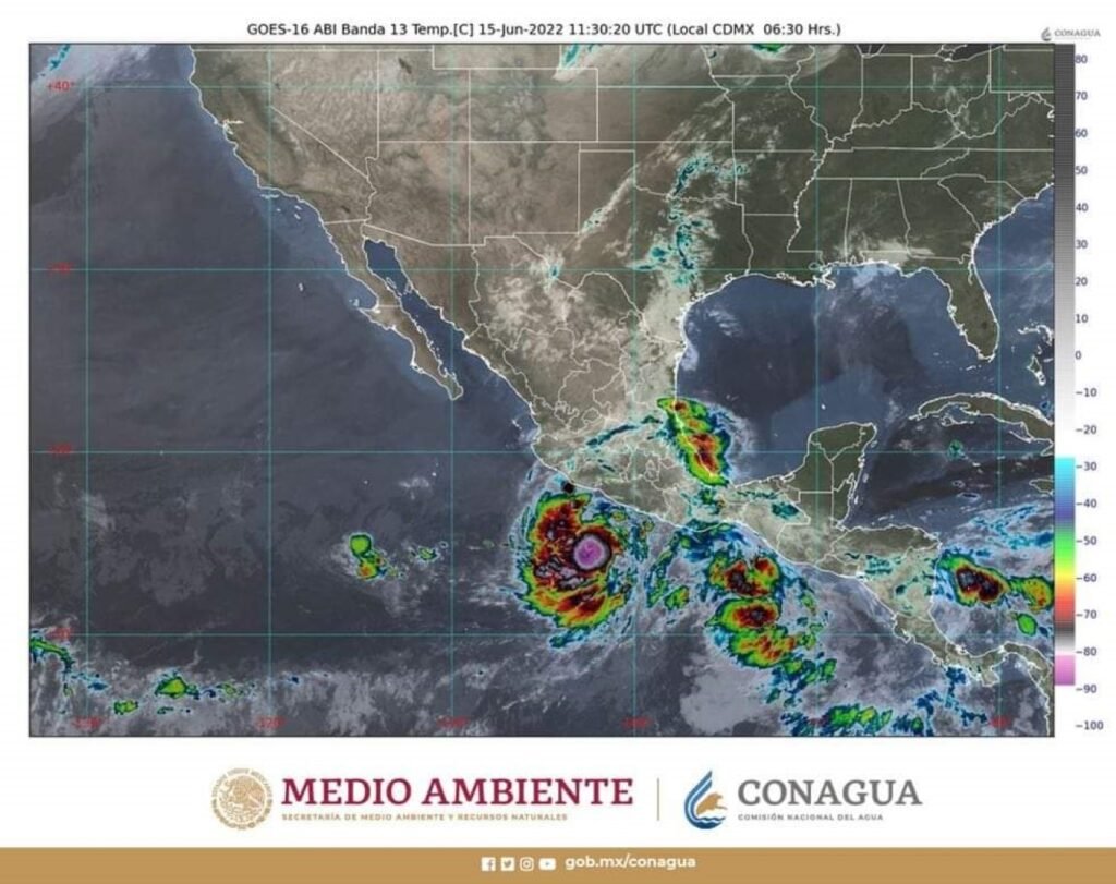 Esta mañana la zona de baja presión sobre el Océano Pacífico se ubicó a 380 kilómetros al sur-sureste de la desembocadura del río Suchiate. Tiene 60 por ciento de probabilidad de desarrollo ciclónico en 48 horas y desplazamiento semi estacionario.