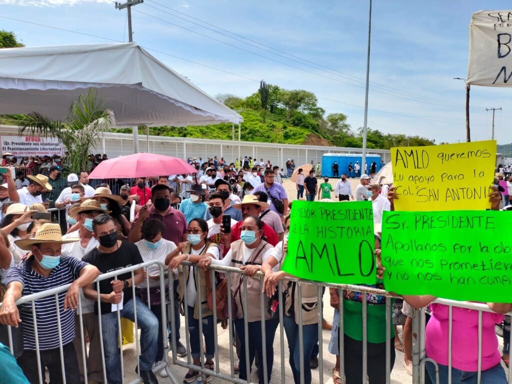 También estaban vecinos de la colonia Los Órganos, quienes reclamaron por el pago de afectaciones a sus tierras por donde pasa el libramiento que este domingo fue inaugurado por López Obrador y la gobernadora Evelyn Salgado Pineda.