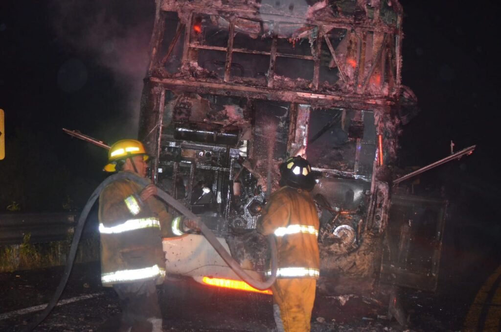 - Hombres armados incendiaron un autobús de pasajeros y dos camionetas de carga en el nuevo Libramiento a Tixtla, anoche; no hay personas heridas