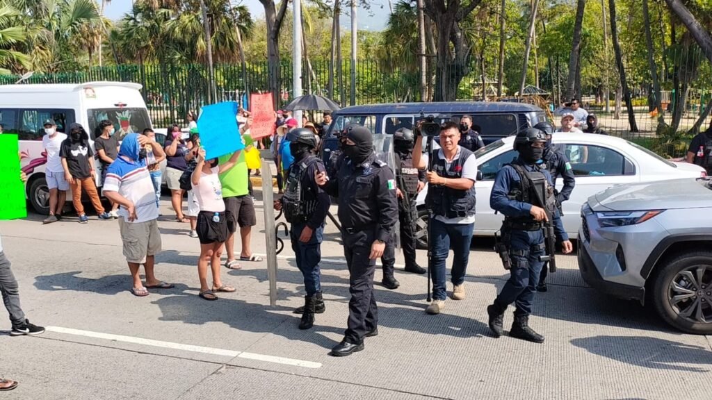 Antimotines de la policía estatal desalojaron a alrededor de 300 comerciantes y transportistas que bloqueaban la Costera Miguel Alemán, en Acapulco, para exigir la liberación de siete comunitarios de la Unión de Pueblos y Organizaciones del Estado de Guerrero (UPOEG) detenidos por militares en Marquelia, luego de un enfrentamiento a balazos.