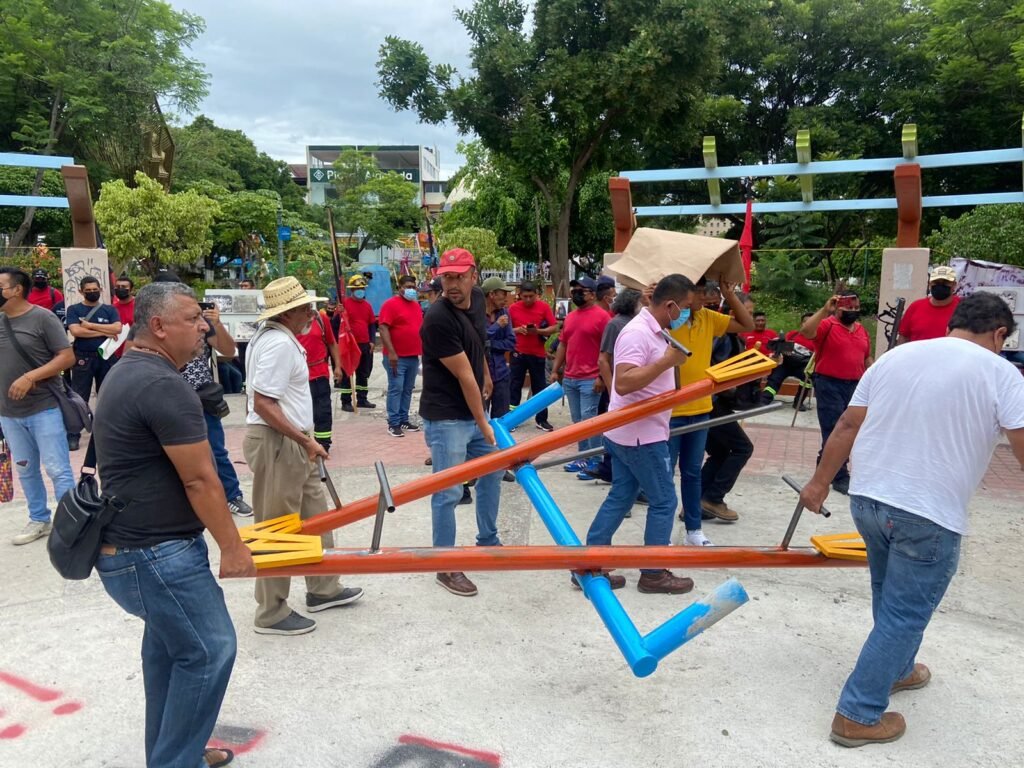 Hasta ese sitio arribaron trabajadores del Ayuntamiento quienes pidieron que no quitaran esos juegos o se actuaría legalmente, pero a Nicolás Chávez y a sus simpatizantes no les importaron esas amenazas y retiraron los dos juegos de metal, se los llevaron entre todos y los pasaron a dejar frente del acceso principal de la sede del Ayuntamiento capitalino, en el centro.