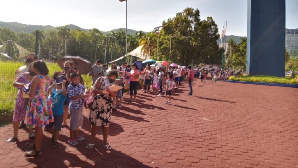 En el Centro Internacional Acapulco (CIA), la fila de padres y niños formados daba prácticamente vuelta al inmueble a las 10:00 de la mañana.Los padres y madres de familia señalaron que la fila avanza de forma ágil, ya que servidores de la nación les ayudan a llegar con sus documentos ya revisados, para apresurar su ingreso al área de vacunación.