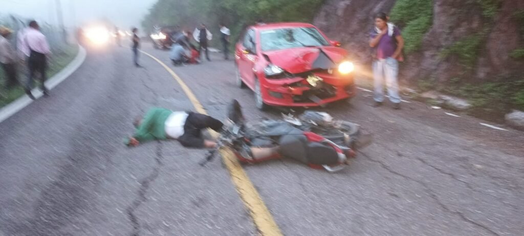 Un hombre resultó herido después de que chocó su motocicleta contra un auto en la carretera Tlapa-Chilpancingo.
