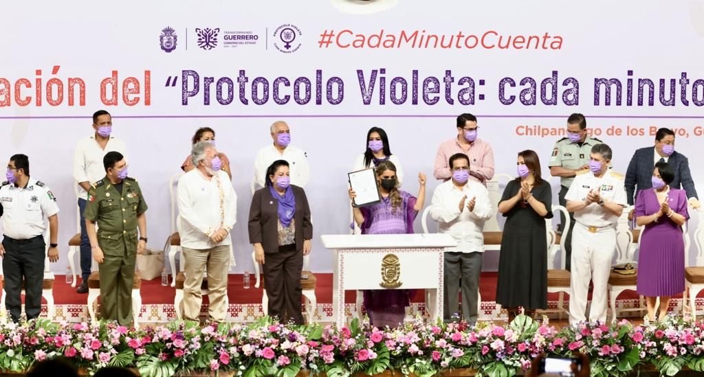 Este lunes, junto con el subsecretario de Derechos Humanos de la Secretaría de Gobernación, Alejandro Encinas Rodríguez, la mandataria estatal encabezó la firma del decreto y presentación del “Protocolo Violeta: cada minuto cuenta”, en el auditorio ‘José Joaquín Herrera’ de la sede del Poder Ejecutivo.