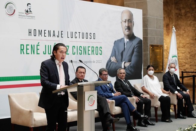 El Senado de la República realizó un homenaje luctuoso en memoria del político guerrerense René Juárez Cisneros, quien fuera coordinador del Grupo Parlamentario del PRI en la Cámara de Diputados, fallecido el 26 de julio de 2021 a causa de secuelas de la Covid 19.