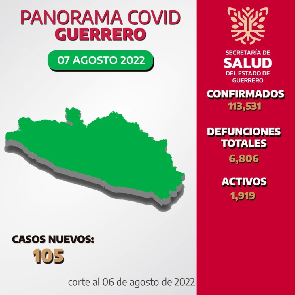 El Estado de Guerrero registra 1,919 casos activos de COVID-19, de los cuales 105 y 2 defunciones se confirmaron en las últimas 24 horas, informó la Secretaría de Salud Guerrero (SSG).