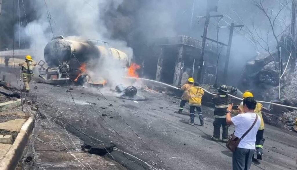 Detalló que una pipa que transportaba combustible impactó a un taxi colectivo, provocando que la primera unidad chocara en la ladera y posteriormente se incendiara.
