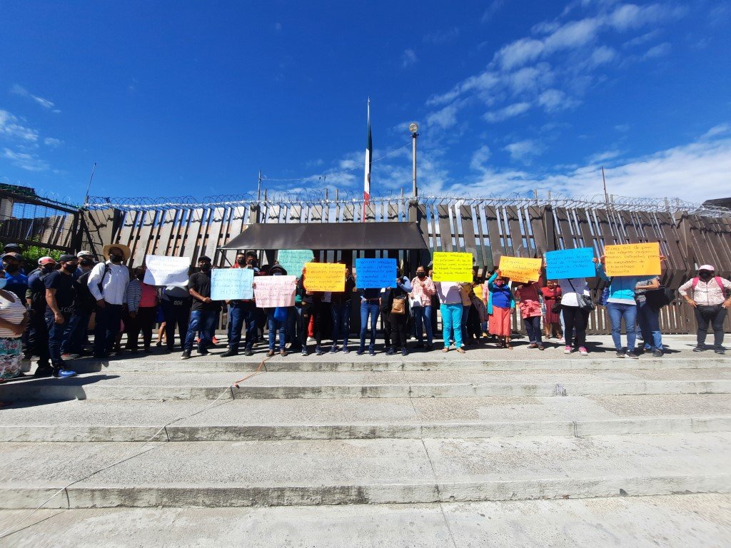 Representantes de unas 40 familias que dijeron ser víctimas de desplazamiento forzado por la violencia en la comunidad de Buenavista de la Salud, municipio de Chilpancingo, protestaron afuera de la sede del Poder Ejecutivo para pedir el apoyo del gobierno que encabeza Evelyn Salgado Pineda.