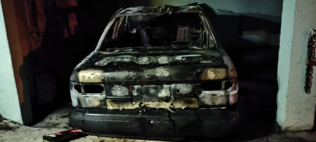 Datos recabados revelan que fue un hombre vestido de negro llegó hasta el domicilio portando un recipiente con gasolina y tras rociar un auto de la marca Nissan, tipo Tsuru, le prendió fuego a la unidad y luego se retiró del lugar.