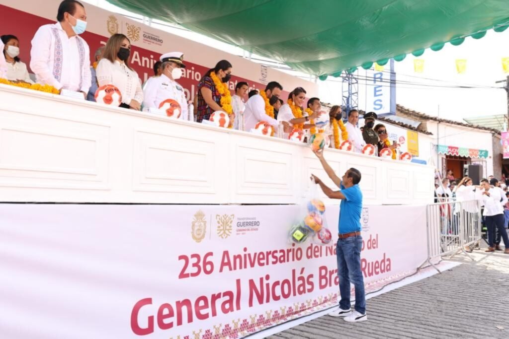 Este sábado la gobernadora dio unas breves declaraciones en la cabecera municipal de Leonardo Bravo, Chichihualco con el edil, Saúl Villa Adame en el desfile conmemorativo del 236 aniversario del natalicio del general Nicolás Bravo.
