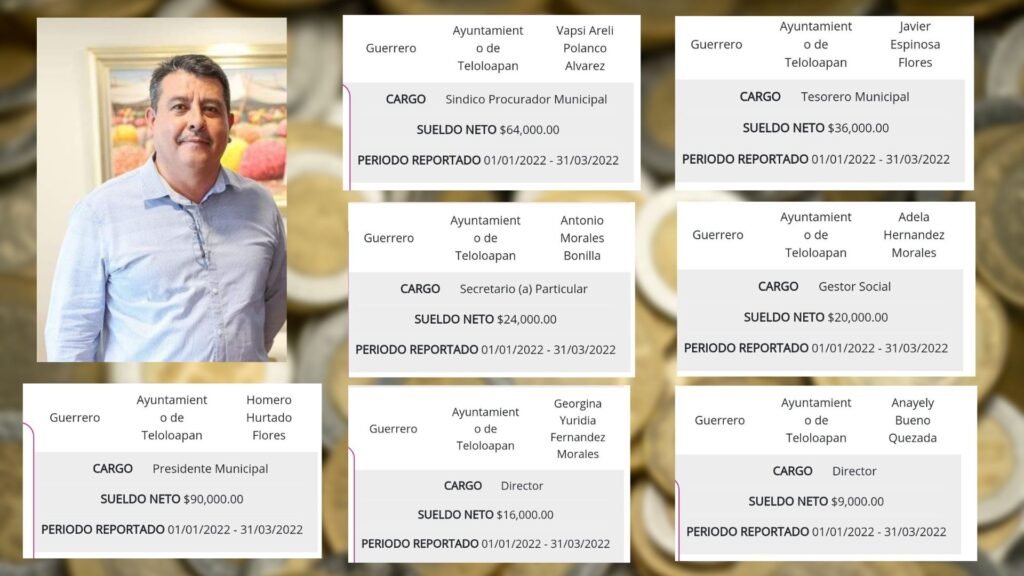 El presidente municipal de Teloloapan, Homero Hurtado Flores percibe un salario neto de 90 mil pesos mensuales, considerado como “desproporcionado” por algunos pobladores, al ser considerado este un municipio pequeño y pobre.