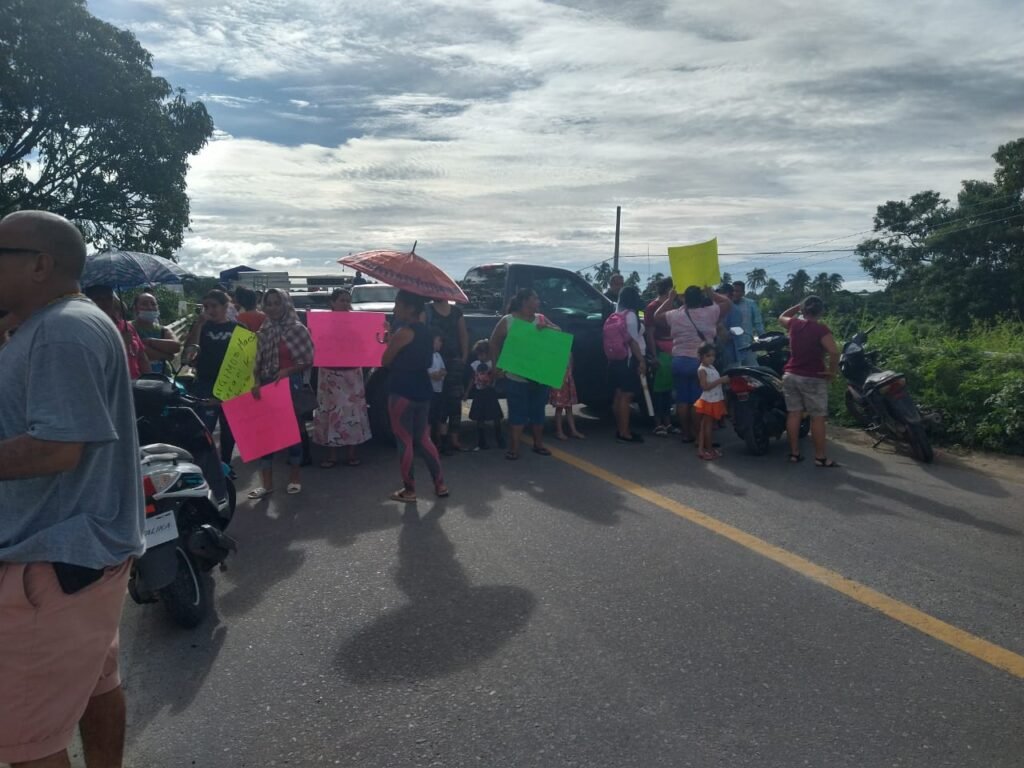 Padres de familia del kínder “Gabriela Mistral” de la comunidad de San Luis de la Loma, en el municipio de Tecpan de Galeana, bloquearon la carretera federal, a la altura de un puente.