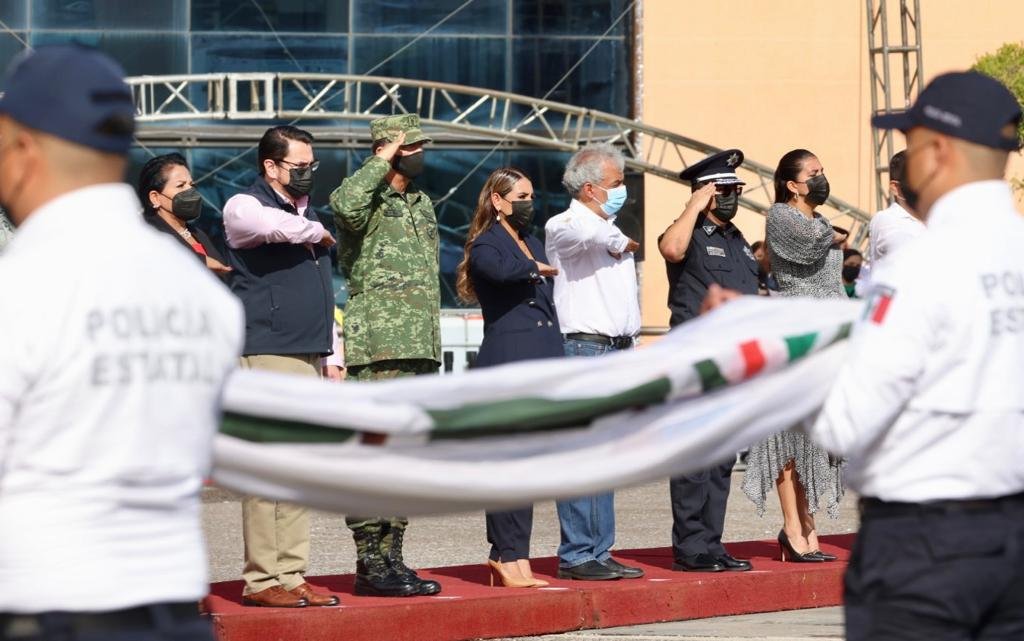 Este lunes, la mandataria estatal encabezó, en la explanada de la sede del Poder Ejecutivo, el izamiento de Bandera a media asta en memoria de las víctimas del terremoto de 1985 y 2017, donde personal de la Secretaría de Protección Civil colocó una ofrenda floral.