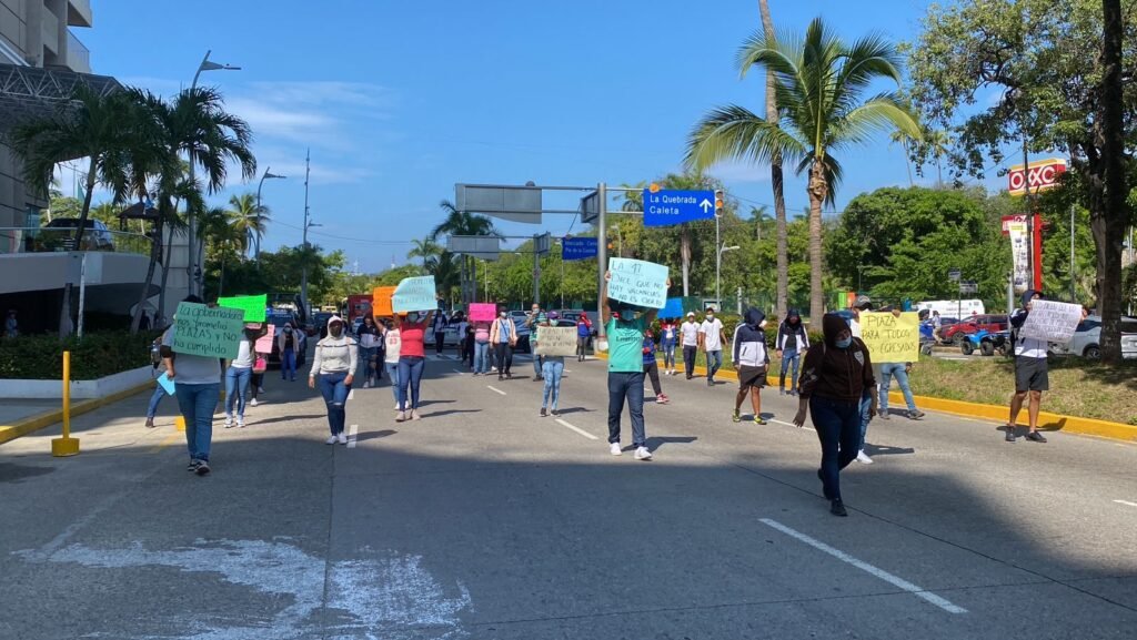 Después iniciaron una marcha por la Costera Miguel Alemán con dirección a la glorieta de La Diana, exigiendo la atención de las autoridades del gobierno estatal.