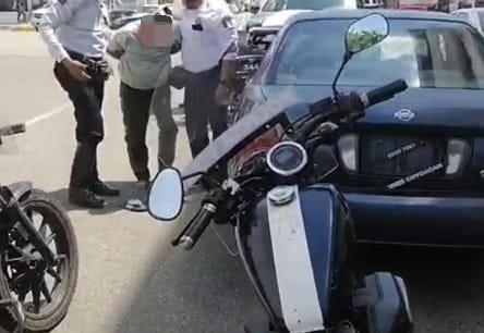 Al llegar a la calle Andrés de Urdaneta, el conductor detuvo la marcha del vehículo Nissan tipo Sentra y amagaba a los oficiales con un machete, lesionando a uno de ellos.