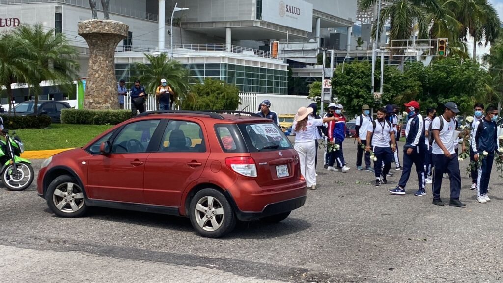 La protesta se dio en el marco de las movilizaciones que hubo en diversas ciudades del estado por el octavo aniversario de los hechos ocurridos el 26 de septiembre de 2014 en Iguala.
