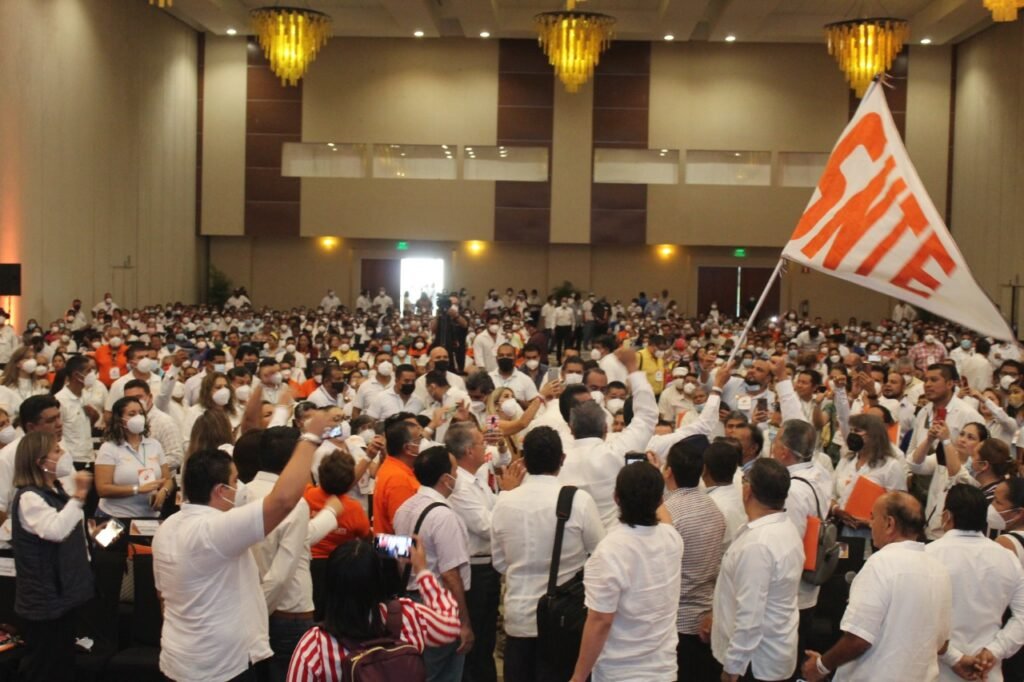 Los gritos de “¡SNTE!”, “¡SNTE!, “¡SNTE!” y “¡Unidad!”, “¡Unidad!” y  “¡Unidad!” comenzaron a escucharse dentro del salón. Incluso, entre regiones competían quién tenía mayor presencia.